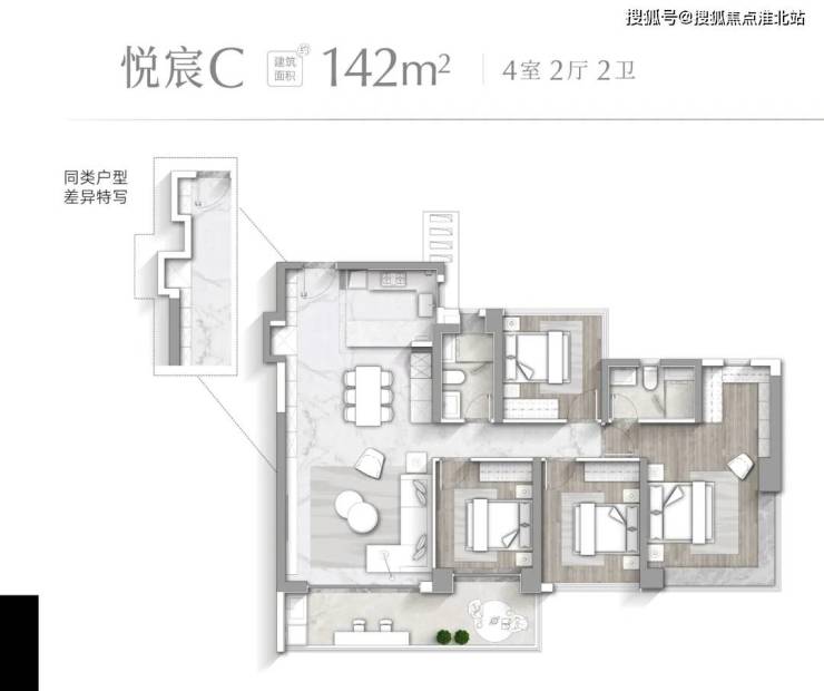 厅卧空间灵活改造约8.4米双面宽阔景阳台,匹配全生命周期使用