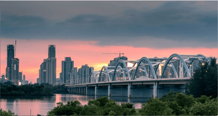 海瑞大桥、南渡江大桥,咫尺通达江东新区,高效往来;新大洲大道、滨江路、椰海大道三大交通主干,衔接一城繁华;海口美兰国际机场、环岛高速、环岛高铁,立体交通,自在出行。