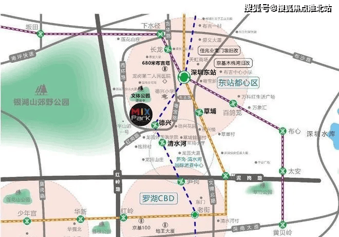 钧濠·Mix Park项目处于紧邻多条轨道交通,17号线/14号线/3号线交汇,交通路网纵横,享受一步罗湖福田双中心醇熟配套,坐拥百万生态文体资源,同时周边汇聚百万城市更新,发展潜力无可限量。