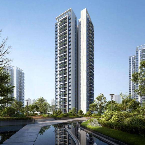 艺术基因:携手国际设计师打造"栖居美学"建筑,外立面采用葡萄牙米黄石材与铝板结合。