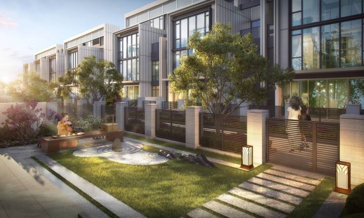 112–117㎡联排别墅:地上 4–5 层 + 地下 2 层,带私家花园、独立车位、私家电梯,实用面积达 350㎡+,私密性强