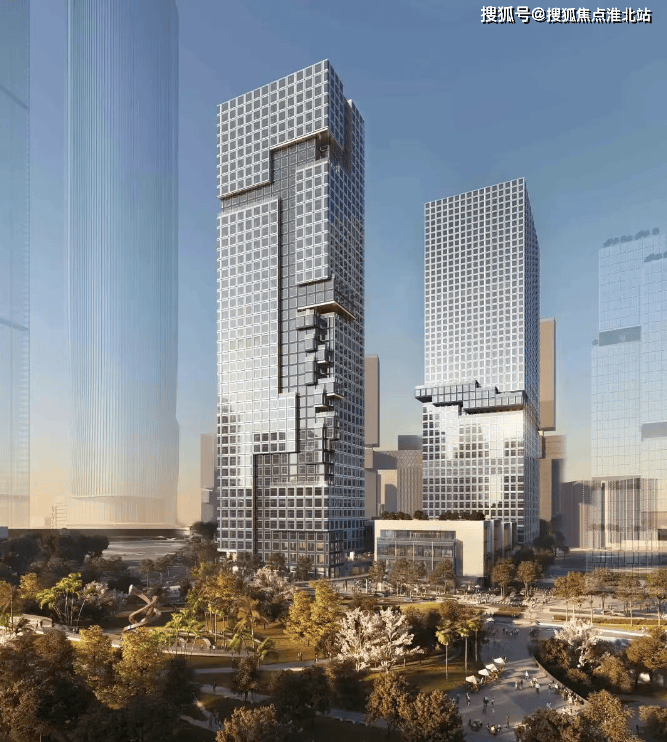 设计理念:由 SLD、CCD、HHD 三大设计机构联袂执笔,建筑形态引入中国传统高山流水意境,外立面创新采用数码像素化表达,焕新城市天际。