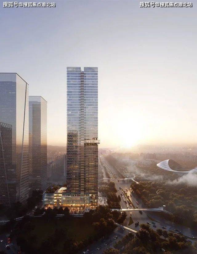 项目建筑高度约 230米, 是前海湾摩天建筑群中又一道独特风景线。项目建成后, 将成为集城市中心丰盛配套、公园绿地、精品地铁商业、互联社交空间为一体的区府CBD湾芯公园资产典范。