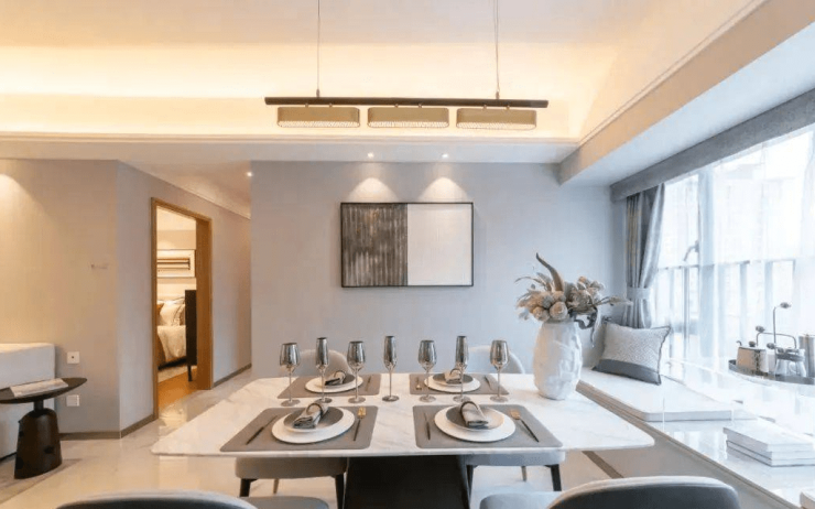 餐厅空间,靠着窗边做了一整排的飘窗,显得独特而又实用。