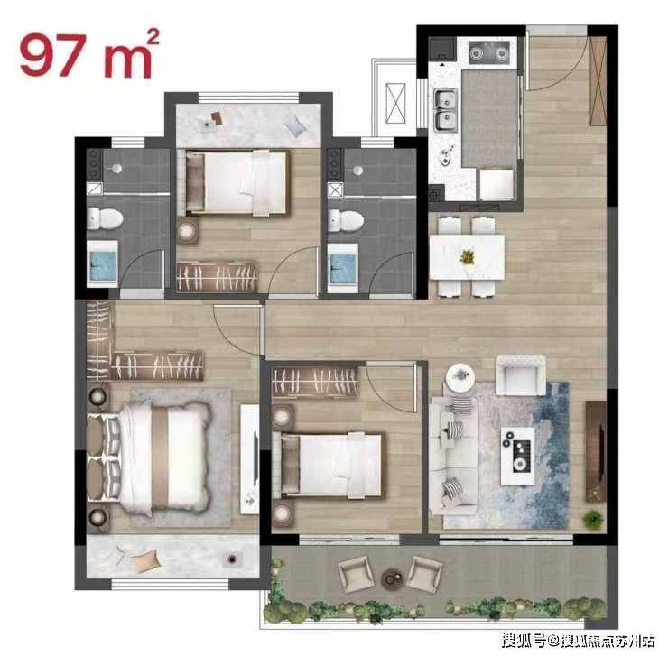 高层:75-97㎡精装三房,均价约1.1万-1.5万/㎡,总价75万起