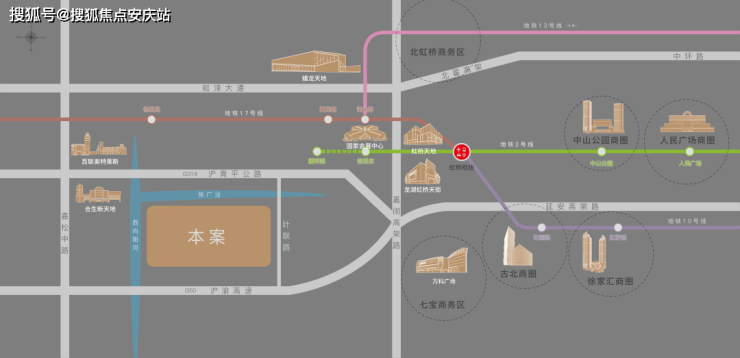 商业方面,项目步行可达虹桥食尚天地、永业购物中心;约3KM内有夏都小镇、天空之城、蟠龙天地等商业中心;约5KM抵达虹桥枢纽、瑞安虹桥天地、龙湖虹桥天街等核心区配套。