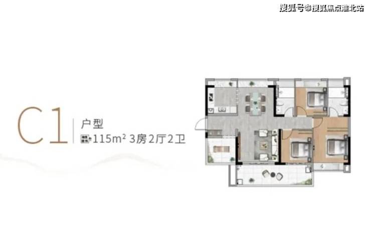 最后这个建面约115㎡的3+1房2厅2卫户型,可以说绝绝子。