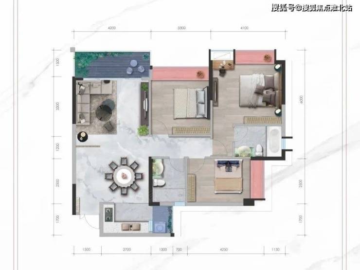 建面约110㎡的格局与90㎡的基本类似,不同之处在于110㎡的尺度感更强,更适合二胎家庭。