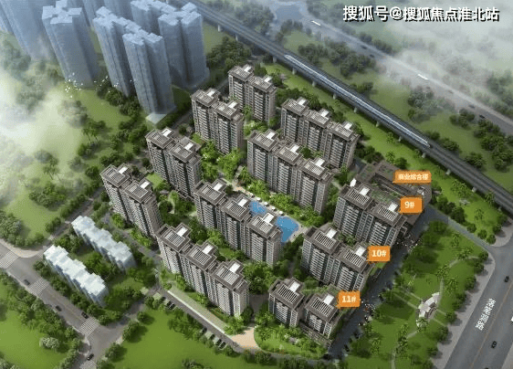 楼栋规划:项目共规划 11 栋纯板式结构的 11-15 层小高层住宅,首层局部架空,负一层为停车场,电梯可入库入户,总户数为 622 户。