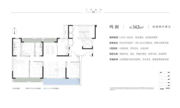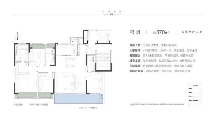 建面约143/170/203㎡户型,四室格局,南北通透;南向大面宽,双联景观阳台,成就郎阔空间尺度,尽揽清风与阳光;独立入户玄关,私密有界;飘窗与房间开间同宽,尽揽阔绰视野;主卧套房设计,独享天地,自成静界。