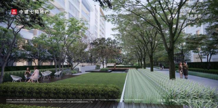 锦鸣雅居以“与自然毗邻而居”的理念,将繁盛的绿意与自然作为基底,绘制独具江南印记的景观空间,塑造酒店感、沉浸式的独特界面;以“一轴五园”串联多重沉浸式生活空间,打造连贯的景观体系,营造各得其所、美美与共的居住境界。