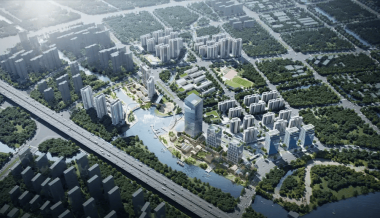 核心参数:整体容积率 2.0,住宅区域绿化率达 38%,社区内自带约 3 万㎡中央园林;商务楼栋外立面采用玻璃幕墙 + 铝板设计,大堂 9.29 米挑空,标准层 4.79 米奢阔层高,远超常规商务空间标准。