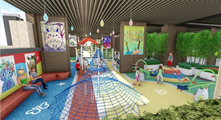 中通永安大厦坚守为居者打造“美好生活”的理念,于首层打造架空层花园,以全龄化体系,构建适用于老、中、青各群体的休闲游玩场所。