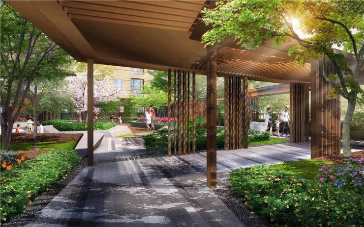 此外,在全民共享区域设置各色景观及配套,移步异景,让置身其间的居者,无论行走、停留、畅聊、游玩都能自得其乐。