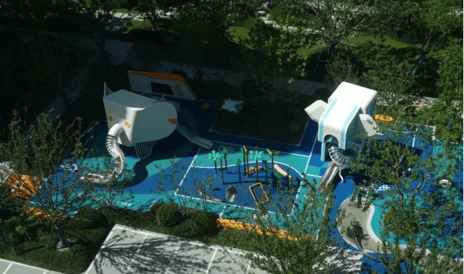 园林景观:以“浮森六境”为主题,打造水岸森林、星耀剧场等景观节点,配备约300米景观绿廊、约9000㎡中央景观。