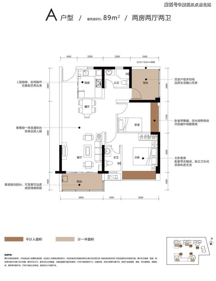 A户型:约89㎡ 百变2+1房2厅2卫