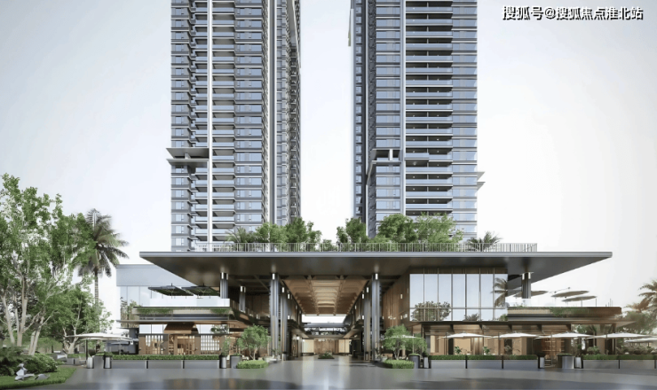 建筑设计:由 7 栋高层住宅围合组成,规划建筑面积约 29 万㎡。整体采用垂直分层的功能布局,构建出包括廊下烟火商业街区、中央车站和抬高式檐上浮岛花园露台的三层立体都市空间,营造出独特的居住氛围。
