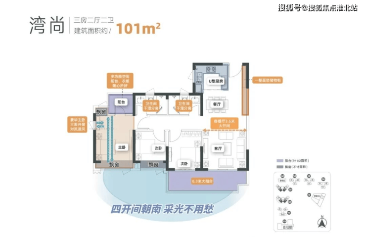 奢阔里:约6-8米超大阳台、全南向布局、主卧三面开窗南北对流、V型建筑建构设计,最大限度多开间朝南、三分离及半卫多套房设计,多代同堂居家之道。