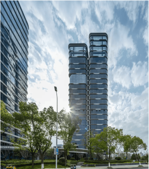 建筑设计:项目规划灰立面搭配大面积玻璃幕墙,打造出通透纯净、硬朗简洁的外观形象,不仅提升了外立面的美感,还大大增加了采光面。