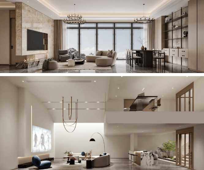 建筑风格:采用新唐风建筑美学,灰色铝板与格栅窗演绎盛唐风骨,每栋建筑退台高度达 3 米。