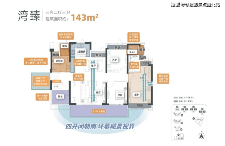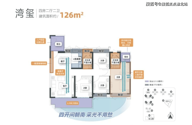奢阔里:约6-8米超大阳台、全南向布局、主卧三面开窗南北对流、V型建筑建构设计,最大限度多开间朝南、三分离及半卫多套房设计,多代同堂居家之道。