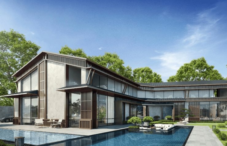 内部配套:设有约 300㎡室外泳池、水系景观、休闲凉亭,住宅楼首层 4.5 米架空设计。