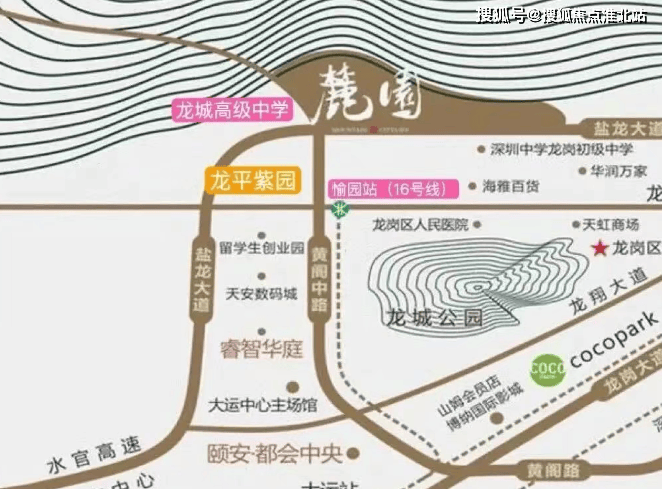 交通配套:周边有 3 号线、14 号线(在建)和 16 号线(在建)三地铁汇聚,距离 16 号线黄阁坑站约 800 米,距离愉园站约 1.1 公里。临近盐龙大道,可快速连接水官高速、机荷高速,无论是公共交通出行还是自驾都能快速通达全市。