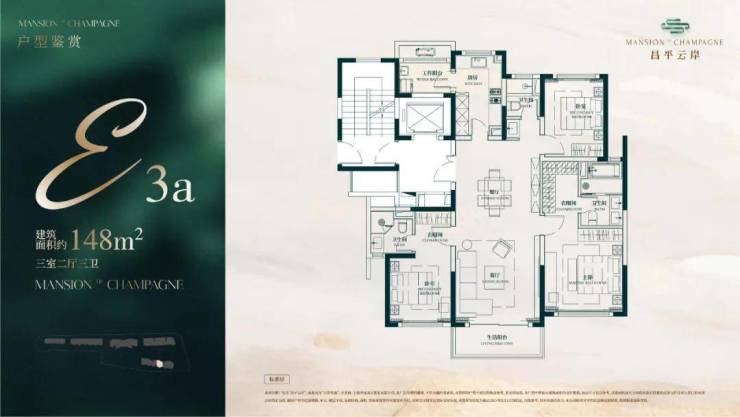 尤其是户型更加方正的建面约148㎡户型,在双阳台的基础上,惊人地做到了三卫设计!
