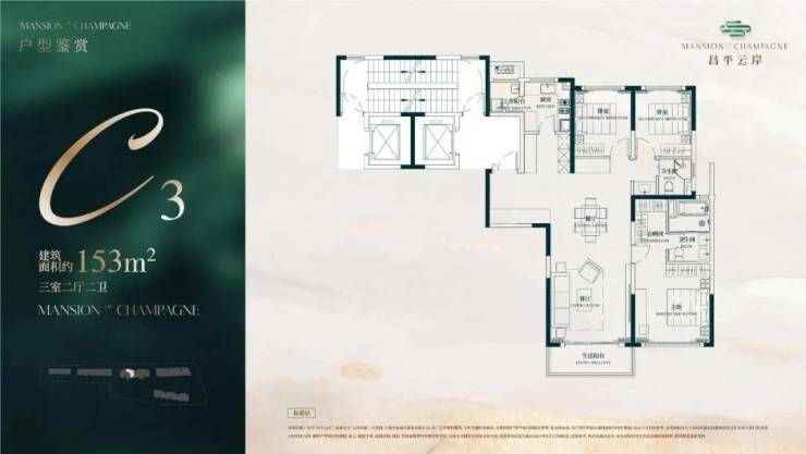 建面约148㎡、建面约153㎡三房,可作为初次改善的首选户型!