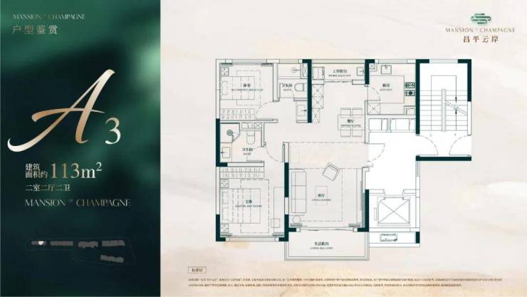 建面约103㎡、建面约113㎡两房,同样配备了双阳台,做到了干湿分离!