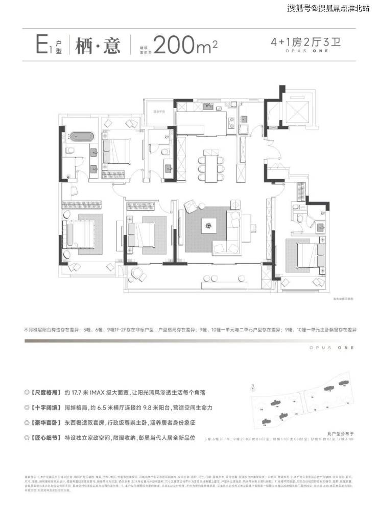 户型起步165㎡,最大248㎡,定位纯粹的低密大平层社区。每个户型都是双联阳台,最大的尺度做到了11.2米。