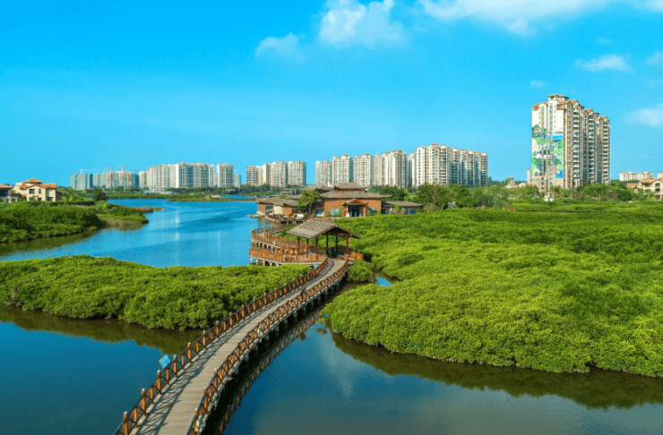 内部配套:风情商业街(便利店、餐饮、药店齐全)、农贸市场、苏宁超市;红树湾医院 + 健康管理中心;火山岩温泉、高尔夫练习场、运动公园、塑胶跑道;社区学校、社群活动中心;湿地公园内部游览车、木栈道、观鸟台;