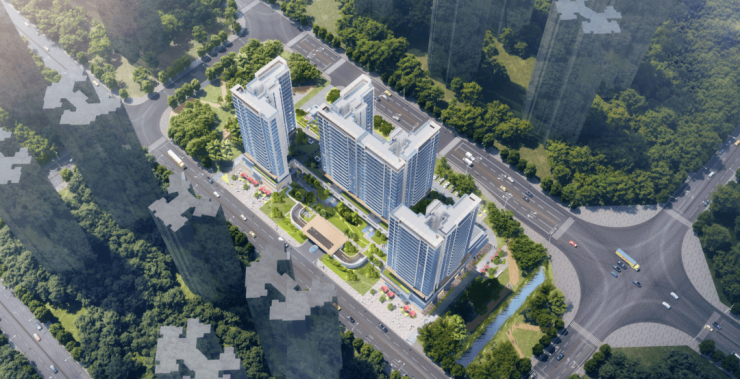 小区规划:悦玺是邻里中心上盖的舒适住区,楼下有 1.2 万方邻里中心,包含 3500㎡生鲜水果销售区、1500㎡社区卫生服务中心等多种配套。小区采用多重归家礼序设计,打造了舒适的居住环境。