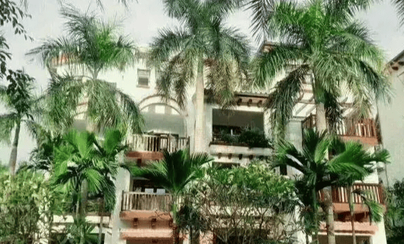 内部:西班牙风情园林、中心泳池、中西餐厅、咖啡红酒屋、BBQ、儿童乐园、健身区、24h 安保