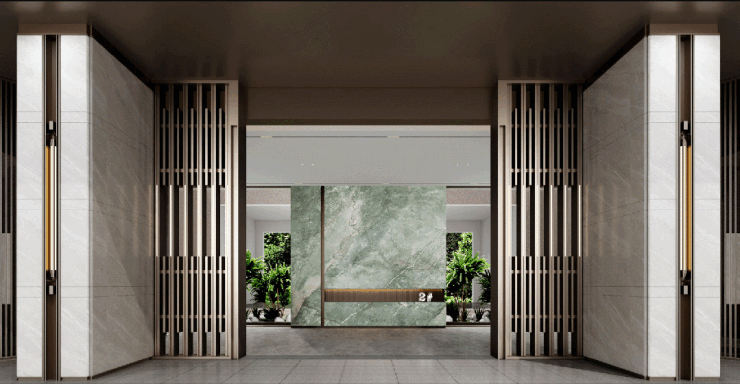 公区的打造上,项目从业主生活所需出发,满足业主追求舒适、富有生活志趣的高品质居所,从地下车库入户、首层大堂、电梯厅、架空层等多个公区, 考究落地用材,兼具现代设计与审美,细节之处彰显国企匠心。