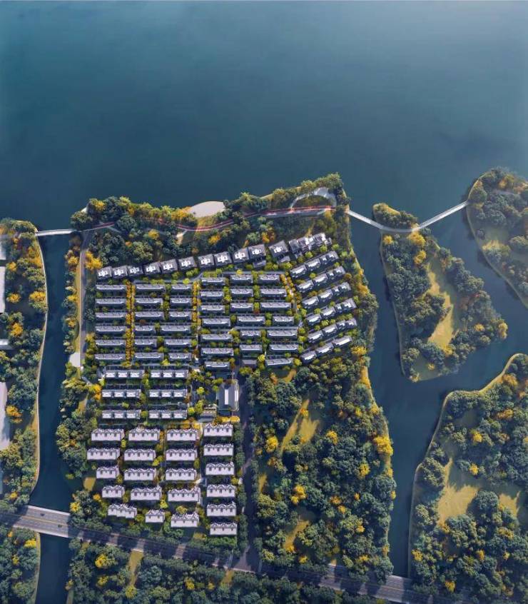 绍线兴日月鉴湖旅游度假区(塔牌手工黄,雅颂由日月集团旗下绍兴中海投资开项目总建面约 22 万方,容积率仅 1.3,规划 676 户,建筑类型包括叠墅、排屋、合院,均为毛坯交付。