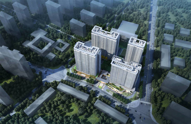 小区共有 4 栋楼,其中 1、2 号楼 19 层,3、5 号楼 26 层,均为 4 梯 8 户设计。