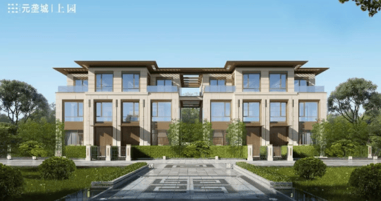 建筑立面现代美观,采用大面玻璃和铝板深浅结合的搭配,突出端庄、高端的建筑风范。整个小区从水系植被到合院排屋,再到多层洋房,由南到北,错落有致,形成了一条舒展的天际线。