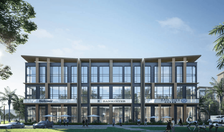 基本指标:总占地面积(一期)约 74 亩,容积率 0.6-0.8,绿地率 35%,停车位 237 个(其中充电桩车位 49 个),非机动车停车位 545 个。