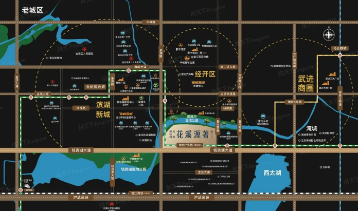碧桂园弘阳花溪源著,“钱资湖大道东·夏溪河畔·墅质住区”,项目南临钱资湖大道,北临钱资荡支流夏溪河,项目占地193.86亩,容积率1.5,距离金坛区政府4.5km,距离吾悦广场4km,世界500强、地产三强碧桂园携手一线房企弘阳,于夏溪河畔匠造低密湖景墅居。