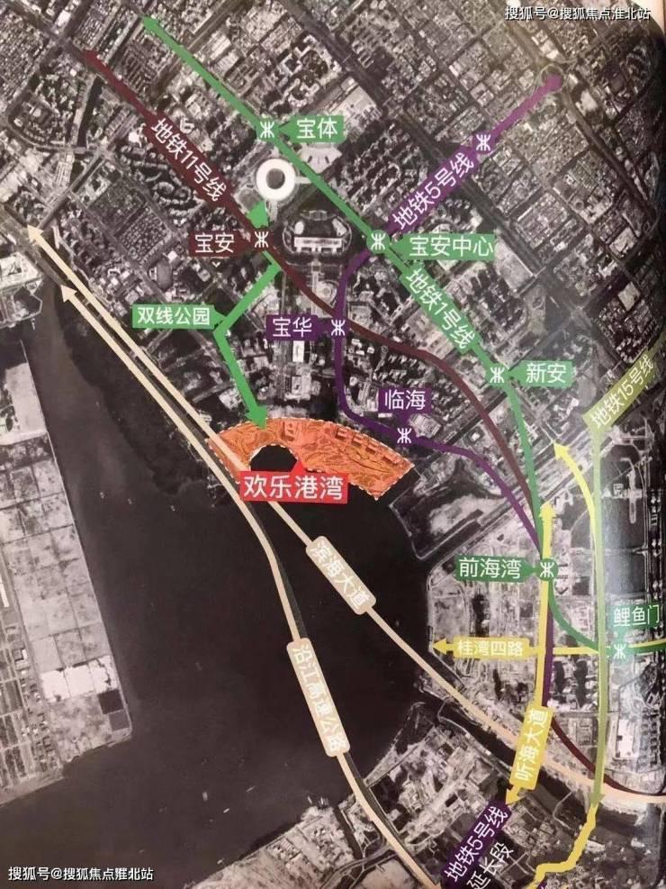 项目位于宝安中心区,由华侨城集团出资100亿打造的欢乐港湾项目内,临近北环大道与滨海大道,接驳5号线、11号线、1号线三轨交汇,占据前海封面。