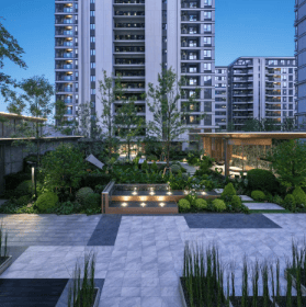 东部建有未来邻里中心,承载政务、服务、医疗健康、休闲娱乐等功能。登云路街区以自然艺术方式链接邻里中心和筒仓艺术中心,住宅围墙退让形成街角口袋花园,嵌入宠物天地、自然课堂等模块。
