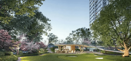 内部配套:小区规划设计了小公园、健身设施等便民设施,还规划有 1.5 万平商业体,实行封闭式管理,人车分流,生活便捷且安全。