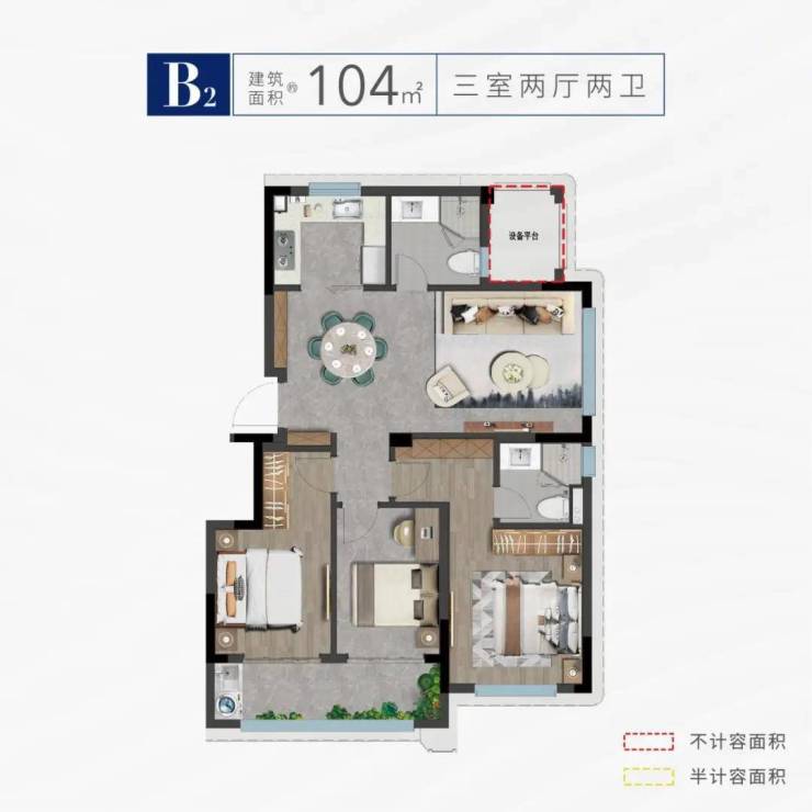 【104㎡】 大面宽全明边套 奢阔阳光生活