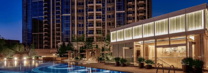 园林景观:小区内设有 400 平露天游泳池、环形跑道等设施,还规划有休闲广场、花园、草坪等,打造舒适的居住环境。