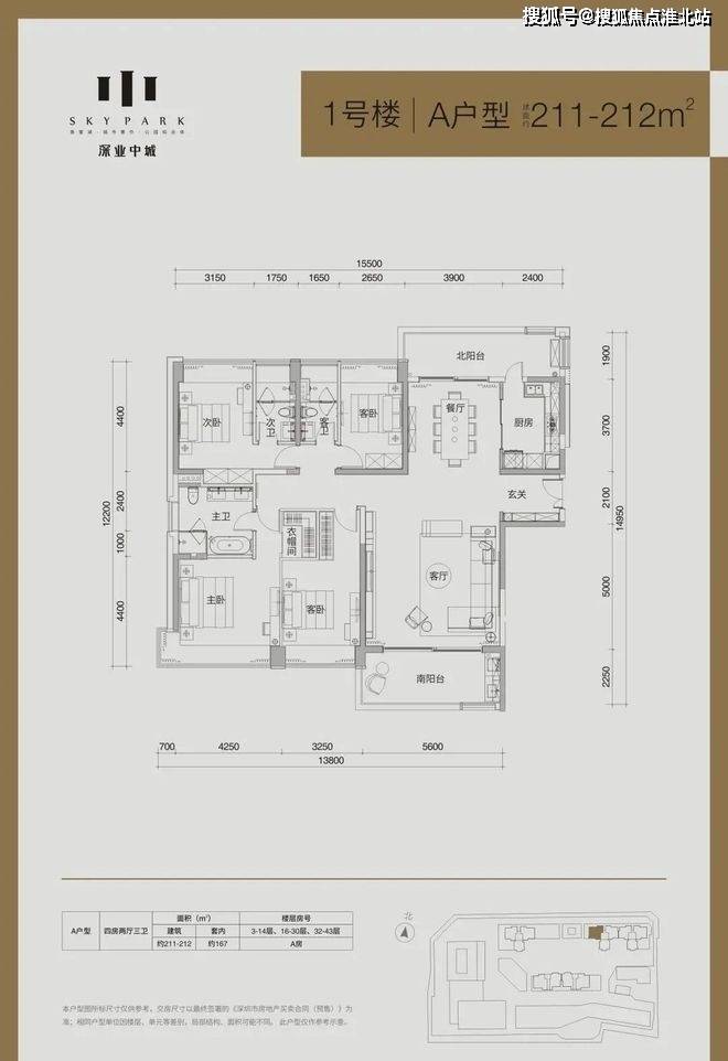 深业中城住宅合计3栋,2/3栋已售,只需看1栋的户型即可。
