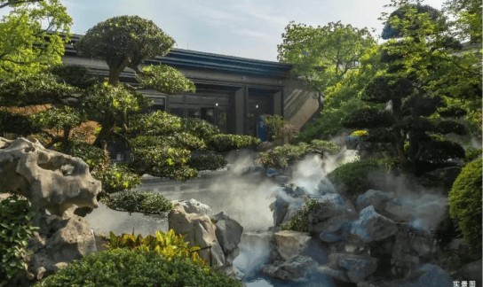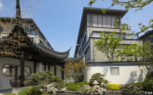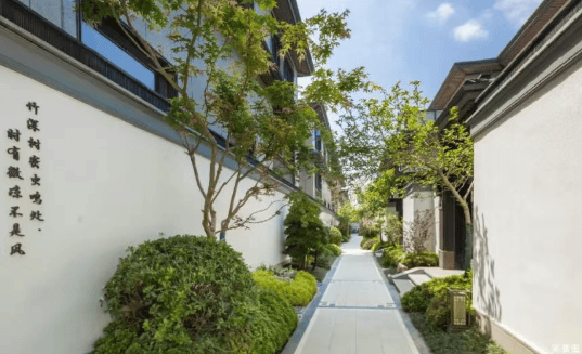 师法苏制:以苏州网师园为蓝本,通过理水叠山、一步一景的造园手法,将江南园林的诗画意境搬进社区,叠石成山、流水潺潺、草木芬芳,营造出四季有景的园林景观。
