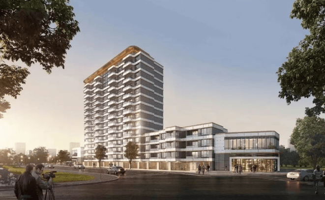 建筑设计:整体建筑布局随河蜿蜒,高低错落的建筑形态契合了江南水乡的水韵特色,加之建筑顶部的金冠起伏,与景观河交相辉映,串联成金色丝带东西贯通,凸显了项目高标准、高品质的居住体验。
