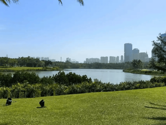 园林:40% 绿化率,热带植被茂密,泳池 + 篮球场 + 儿童区