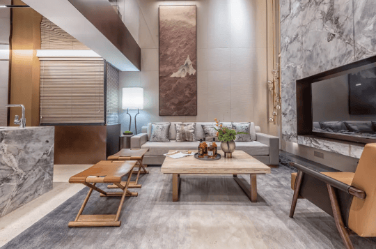 设计:新加坡现代极简美学,外立面采用米白色与高级灰搭配三玻两腔玻璃